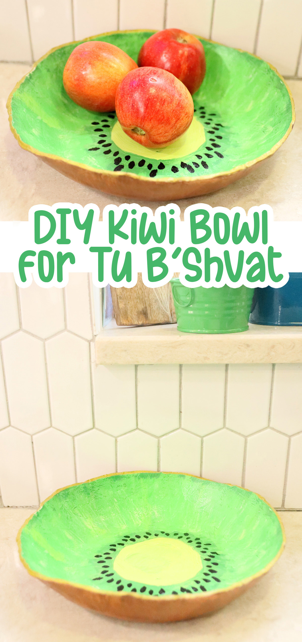 Craft an adorable DIY air dry clay fruit bowl – perfect for Tu B’shvat! I turned mine into a kiwi, but you can work with any fruit. Then, check out this Tu B’shvat hat craft. This post contains affiliate links.