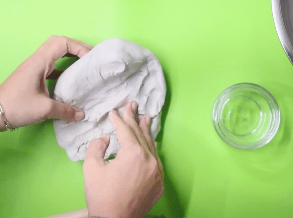 1. Start by softening your entire block of clay by kneading it for a few seconds. Form a ball and then flatten it to a pancake.