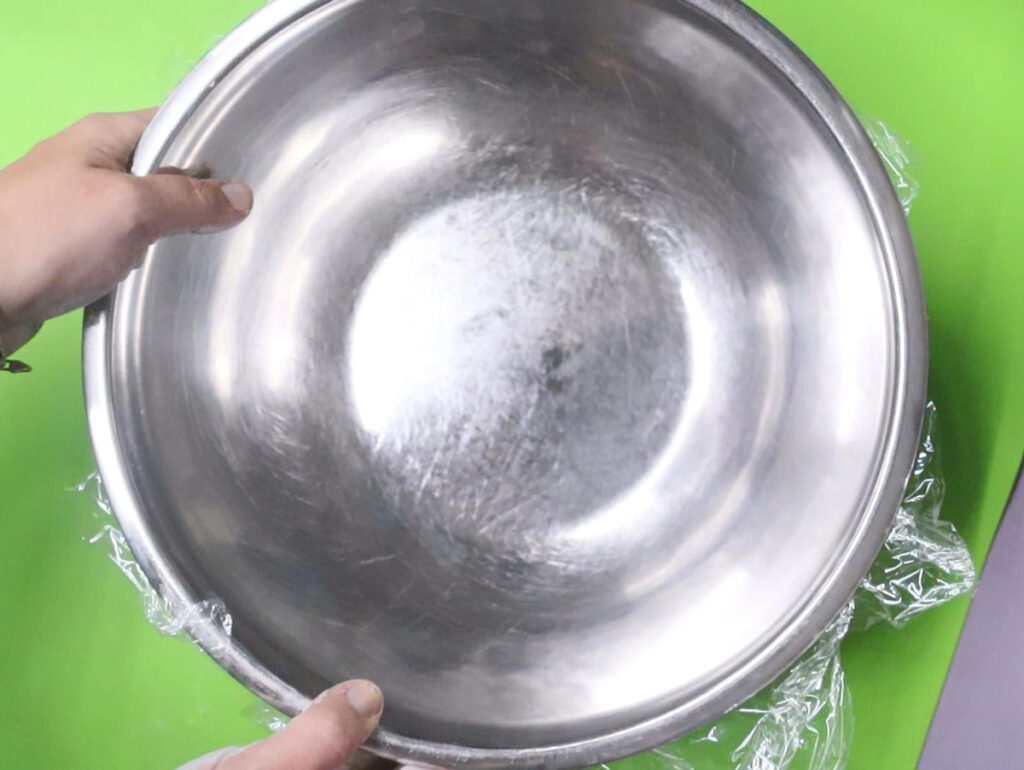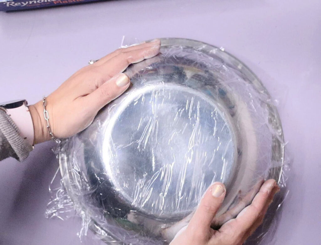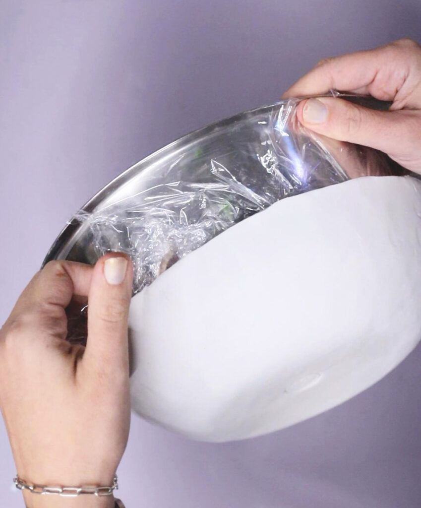 - Cover your bowl with plastic wrap. It may give the bowl some texture on the inside, but it’ll also make it much easier to remove.