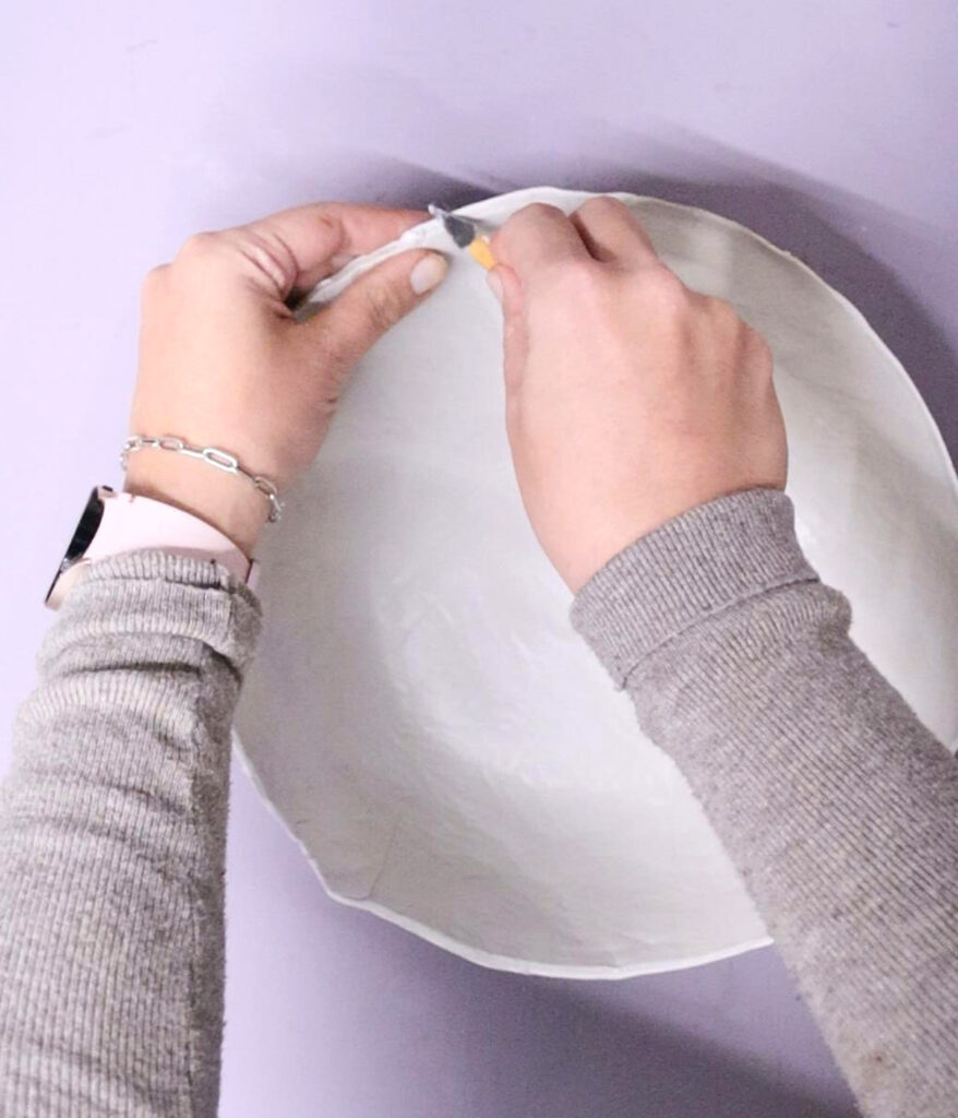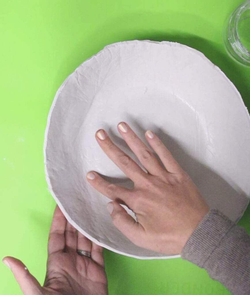 When it’s partially cured, carefully remove the clay from the base bowl. Slide your fingers between the two and gently nudge it off.