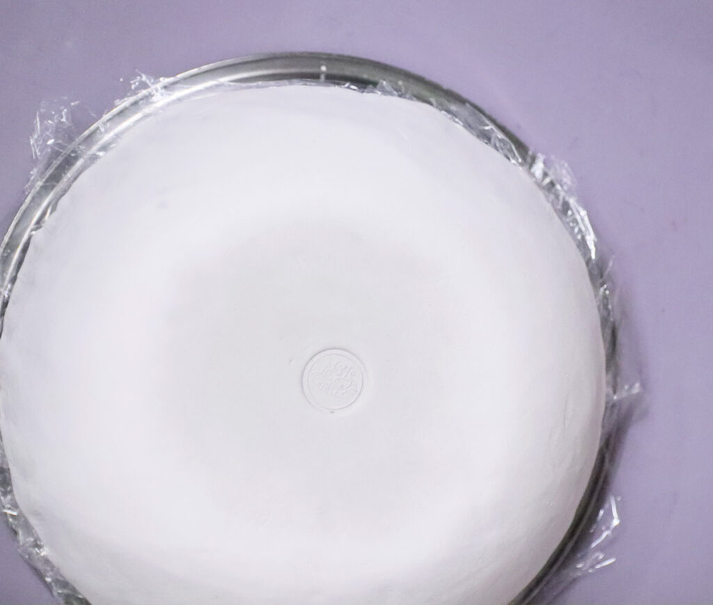 7. Center your bowl (plastic wrap side down) on your clay circle.