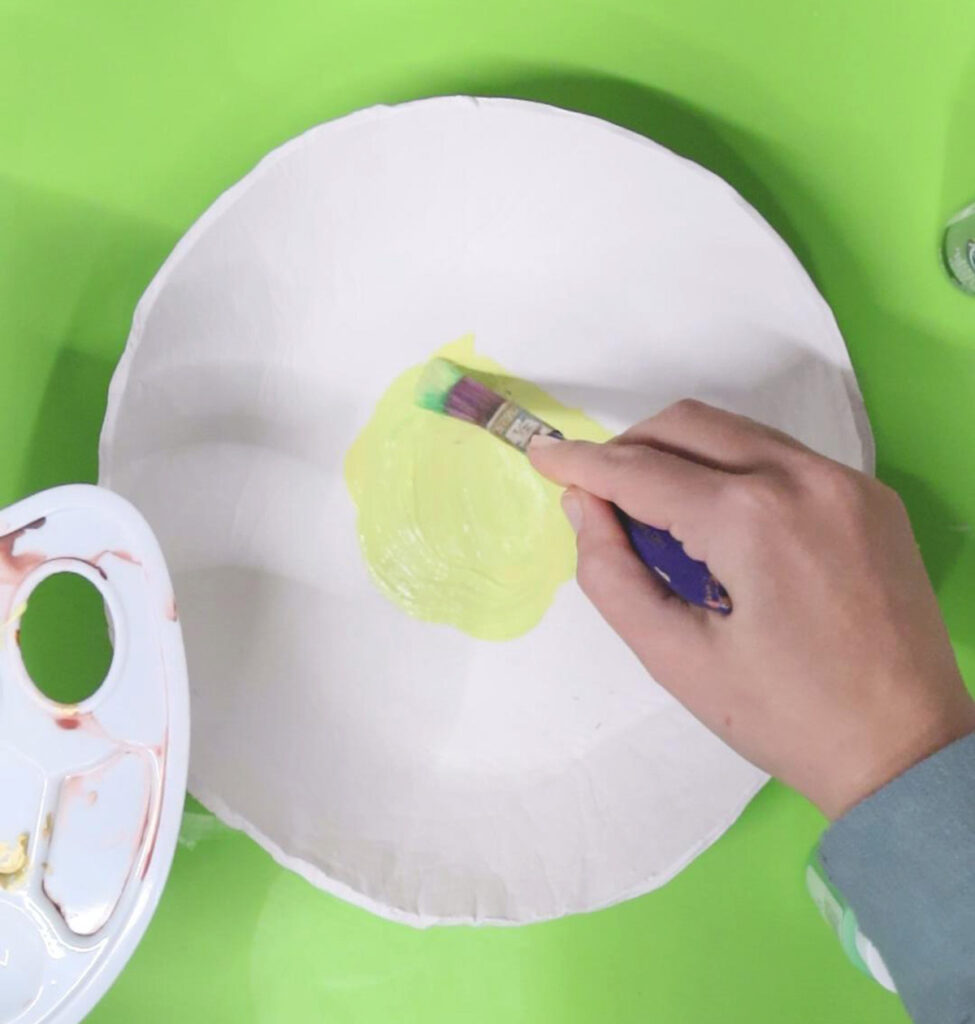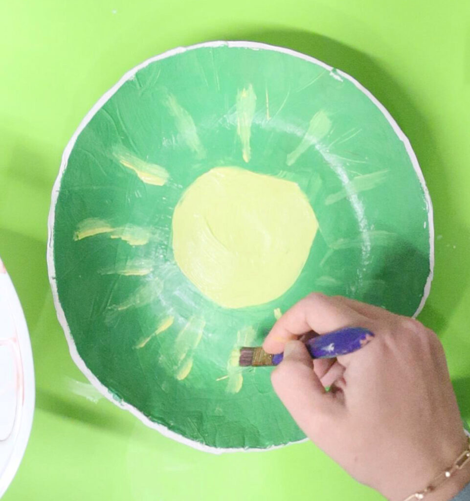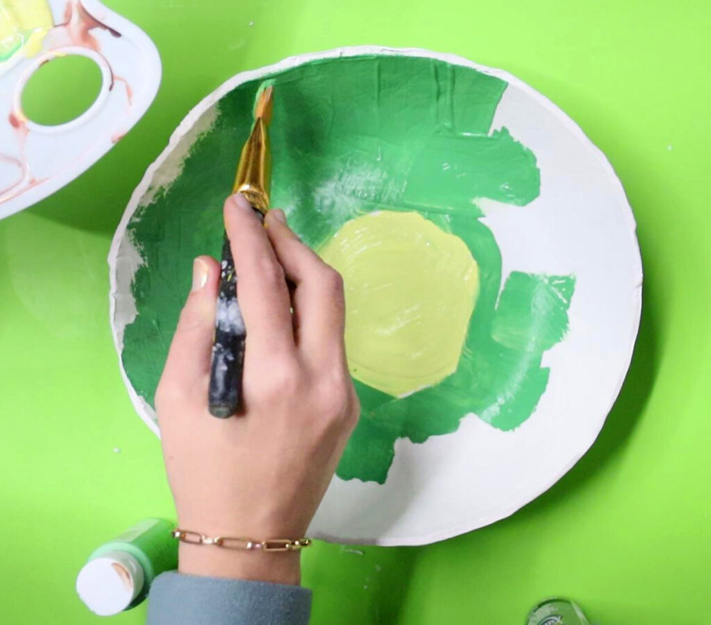 15. Allow your bowl to dry completely! Then start painting. I did a very light green uneven circle in the center.