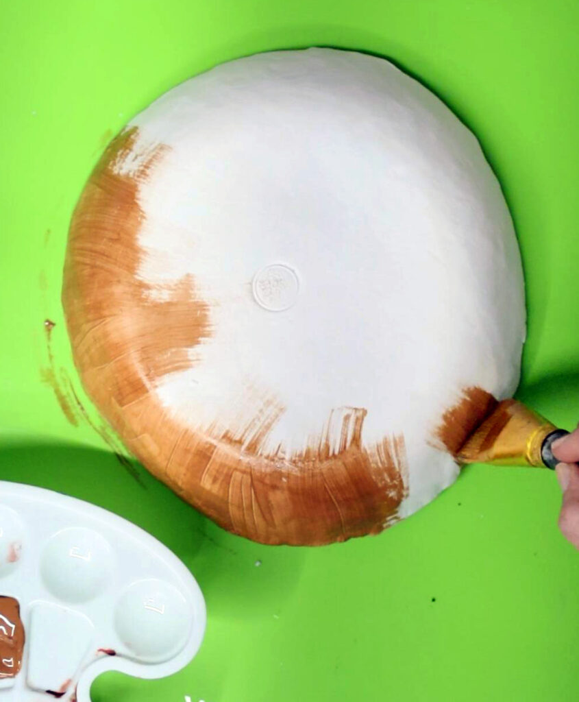 18. Paint the outside brown, using unbroken strokes from the edge toward the center.