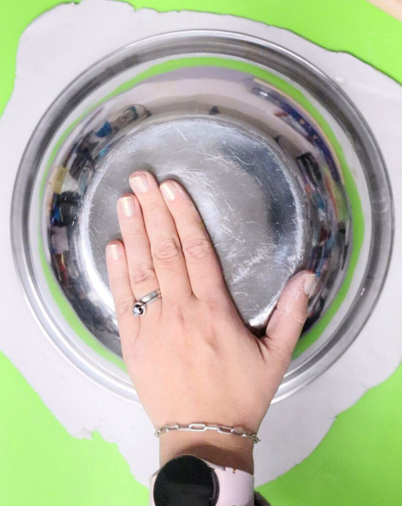 This DIY air dry clay fruit bowl is shaped around a large mixing bowl. This is my favorite way to make the bowl shape because it’s just the easiest.