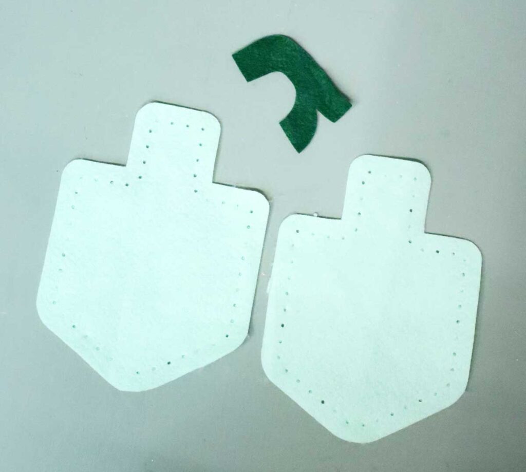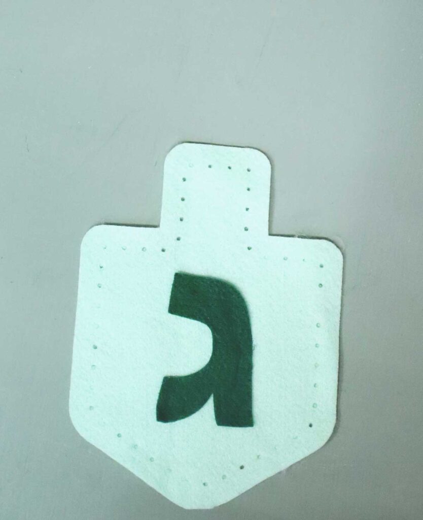 Cut out two matching felt dreidels. They do not have to be perfect twins. A loose cut still works and it all comes together once it is sewn and stuffed.