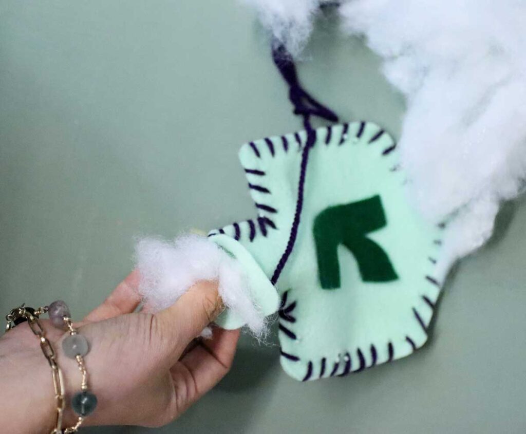 Close the opening with a few more stitches and tie a good knot. Imperfect stitches are part of the charm here, the goal is for kids to feel proud and a bit more confident.