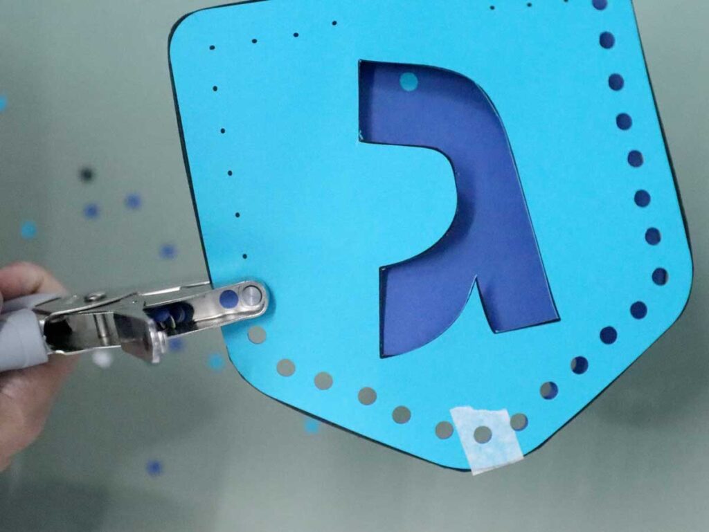 I cut the gimmel out of the top layer using a craft knife so that it shows the darker blue bottom layer through.