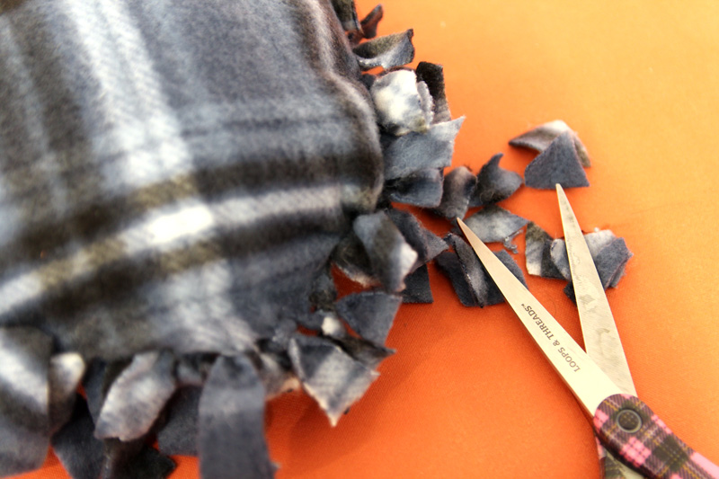 Cutting it right. The size of your fringe should be comfortable enough for tying, but not so big as to be confusing. Mine were on average two inches long.
