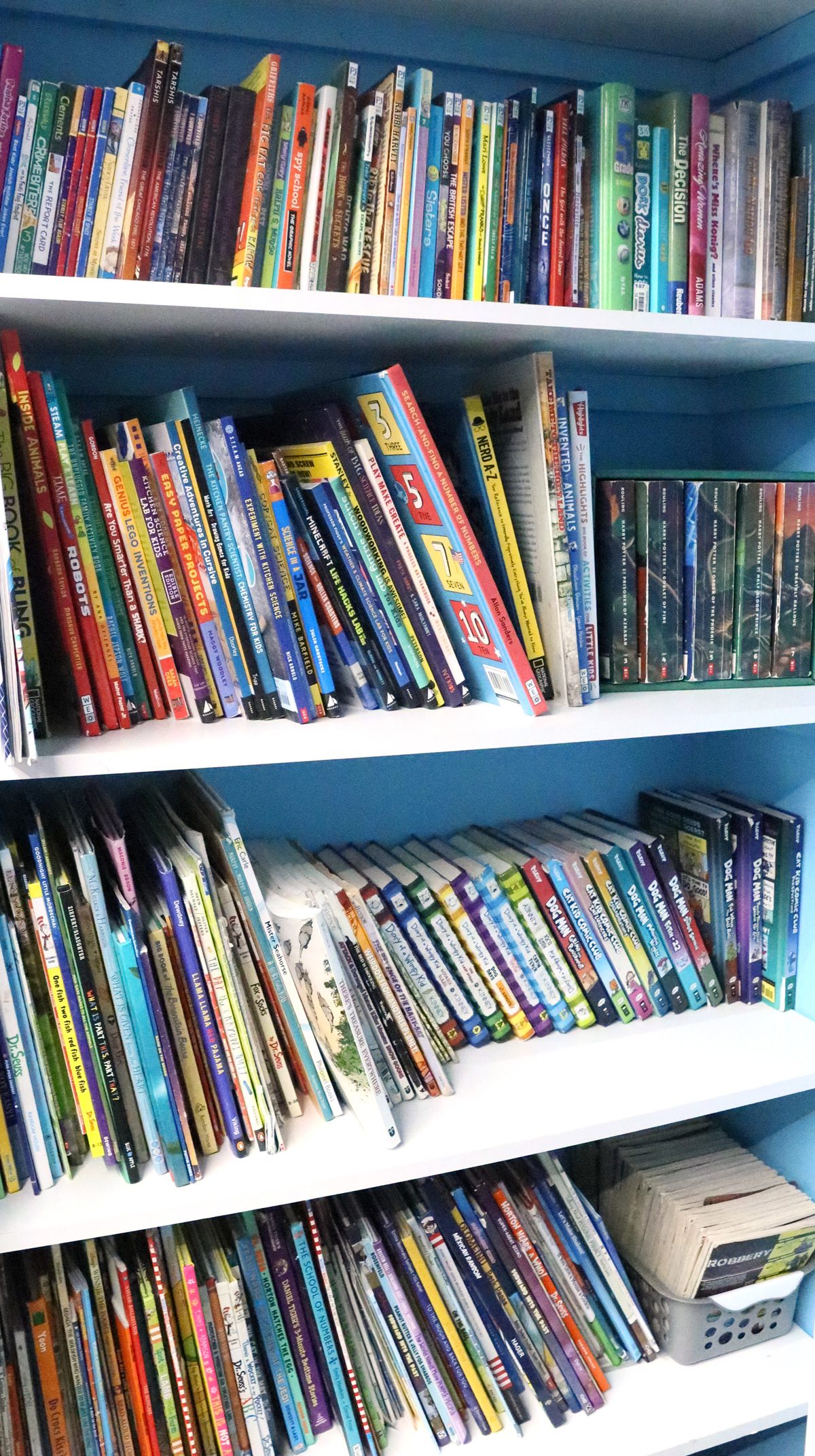 - Bookshelves that will be cleaned (we only do the ones with the kids’ books, not Judaic sefarim.)