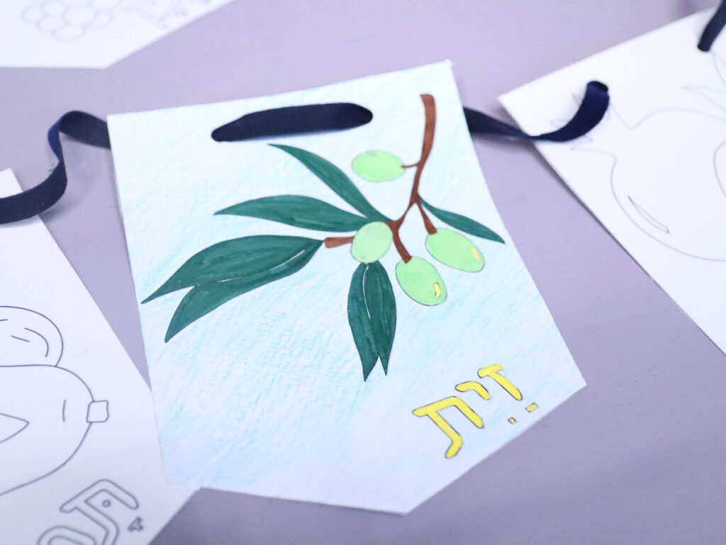 The color-in one is great for kids to create home decor for Tu B’shvat or the Sukkah. It’s great for crafting workshops, as an activity that can be started and taken home.
