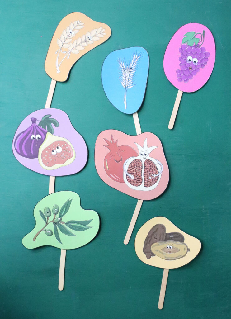 These puppets are fabulous for Tu B’shvat, or any time you’re highlighting the seven species. It’s great as a Parshat Eikev craft – the portion of the Torah that lists the seven species.