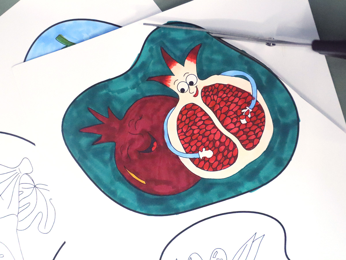 The puppets were illustrated to be playful, with some showing more than one of the fruit and adding character to them.