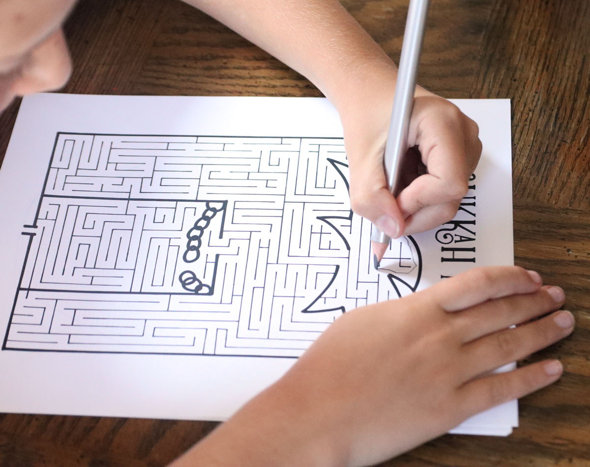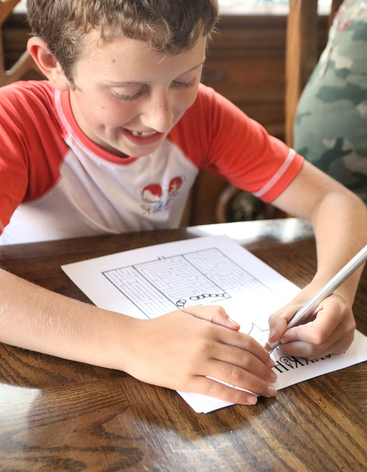 I find that mazes are perfect for less-creative kids who still like taking pen to paper and figuring things out. They really build spatial awareness and problem-solving skills, memory, focus, and organizational skills. Y, age 9, tests all of my mazes for me (and yes, he does sometimes catch mistakes which I then go and fix!)
