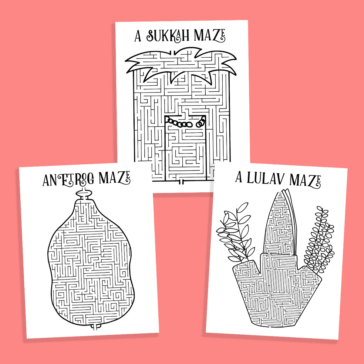 These mazes are mid-level to slightly harder mazes – a bit more challenging than my Rosh Hashanah ones.