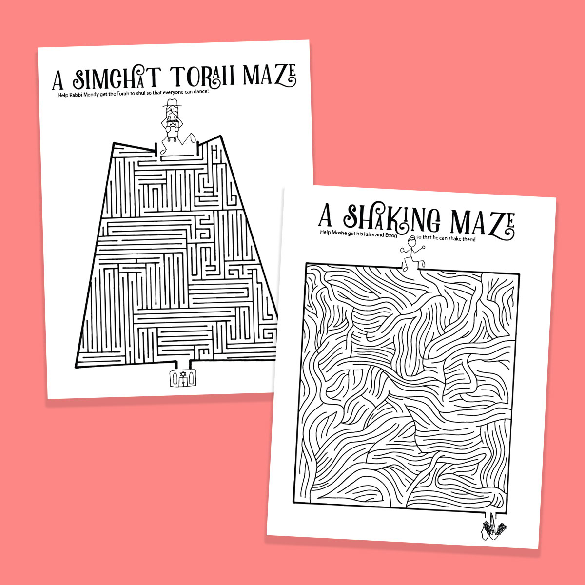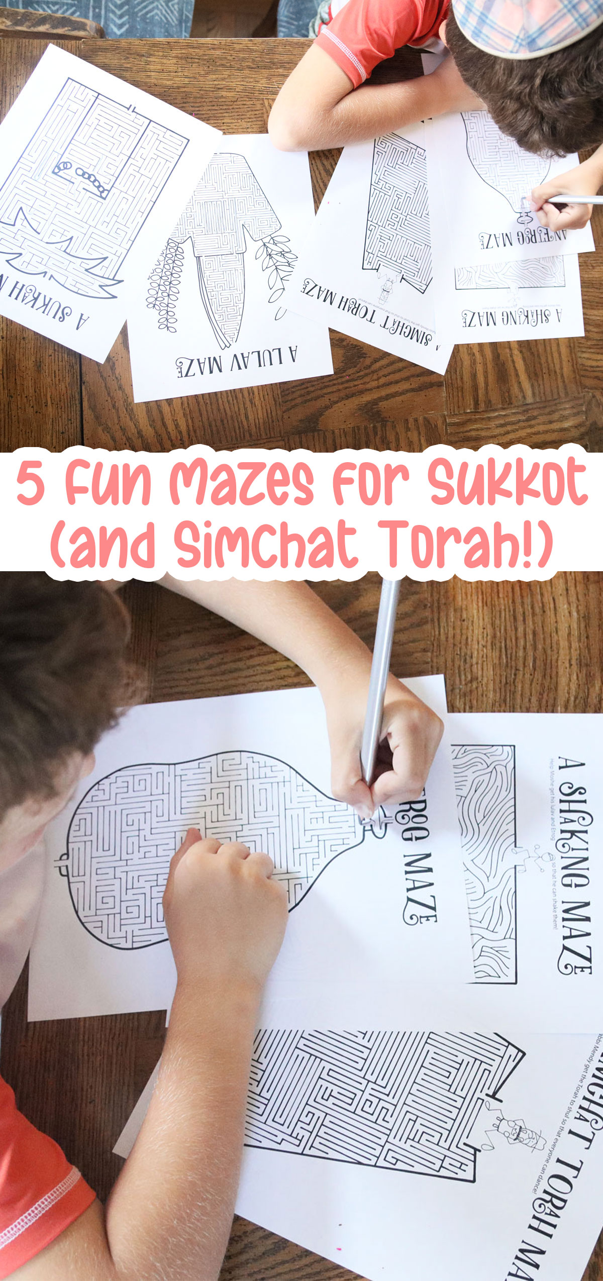 Enjoy these fun Sukkot mazes, including designs for Simchat Torah, too, and a free printable sample of the Sukkah maze! I’ve got Rosh Hashanah mazes for you to download too!. This post contains affiliate links.