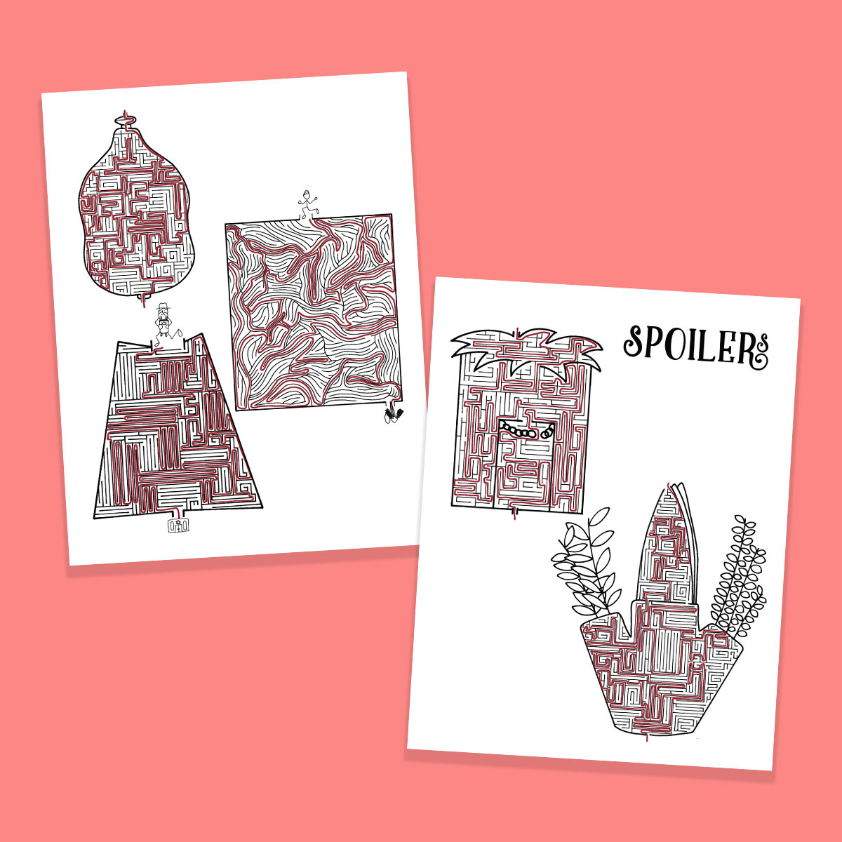 All of my mazes are digitally illustrated by me, including hand drawing (on my device) and plotting the entire thing from scratch.